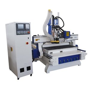 This CNC router is a high-speed, automatic load/unload heavy-duty CNC routing system for the nested based feed-through machining. It is useda in the nested based production of cabinets, closets and custom furniture.